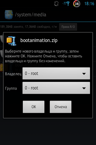 - Открыть рут эксплолер и скопировать файл bootanimation.zip из SD в /system/media